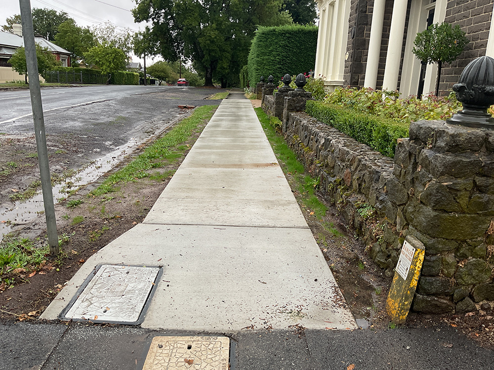 The asphalt footpath, extending approximately 22 metres from the Ebden Street intersection along the north side, has been replaced with a 1.5m wide concrete path.