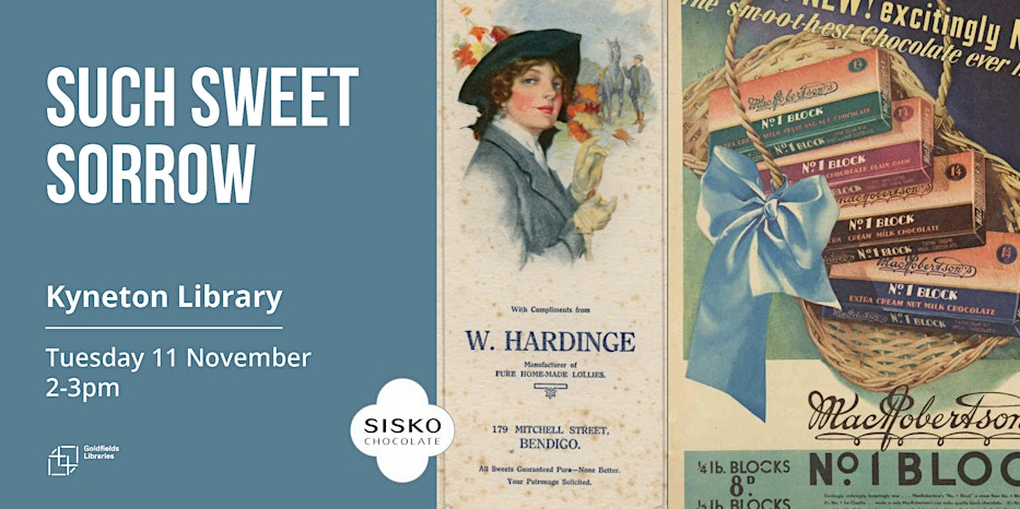 Join Bendigo Regional Archives Centre to explore both the bitter and the sweet in the world of chocolate and confectionery across the centuries in north-west Victoria. Hear surprisingly tragic tales of lost loves, suspicious deaths, and intrigue, followed by a chocolate exploration and tastings from Sisko Chocolate Kyneton.